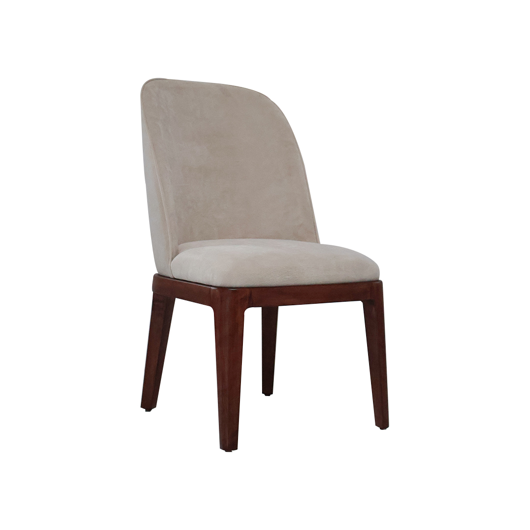 Fabric: Appears to be a soft, high-performance woven fabric like velvet, boucle, or a smooth linen/polyester blend, often chosen for its durability and stain resistance in a dining setting.