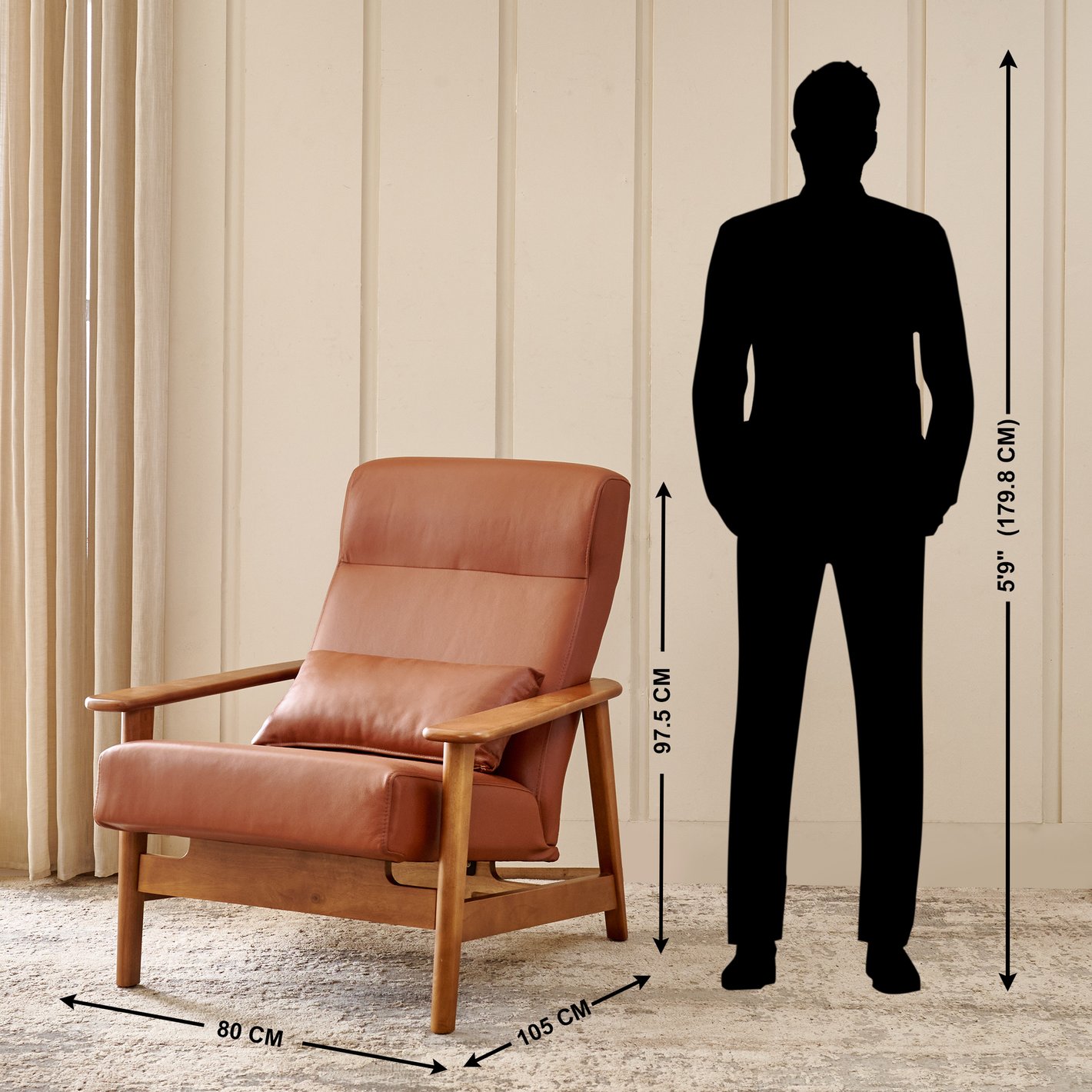 Deep Seating: With a depth of $105\text{ cm}$, this chair offers a significantly deeper recline than standard accent chairs, encouraging a laid-back, lounging posture.