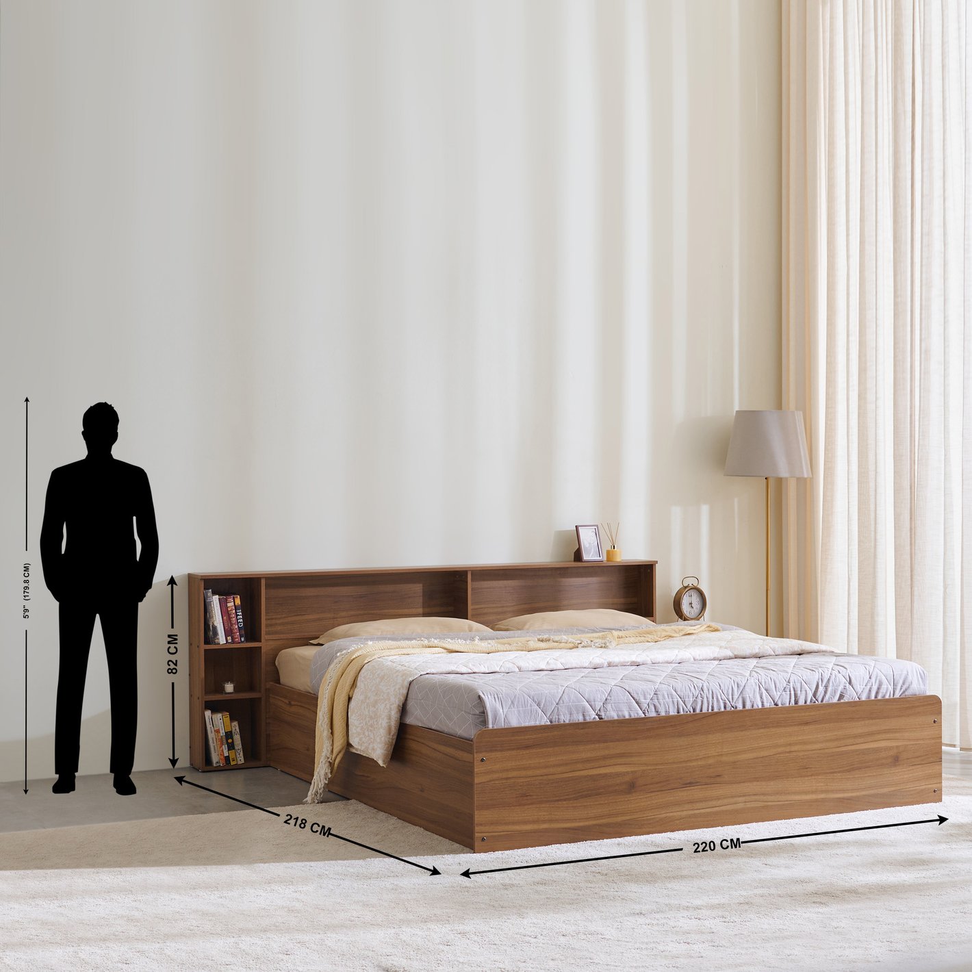 (Note: The man standing next to the bed is shown as 5'9" (175.3 cm) for scale reference.)