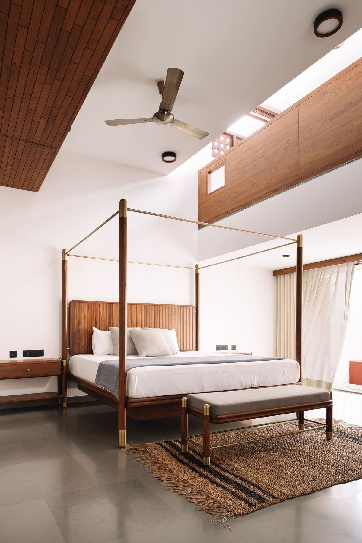 Construction & Finish: The frame is finished in a light oak or natural wood veneer, creating a bright, airy, and contemporary look. The low-profile platform base keeps the design grounded and clean.