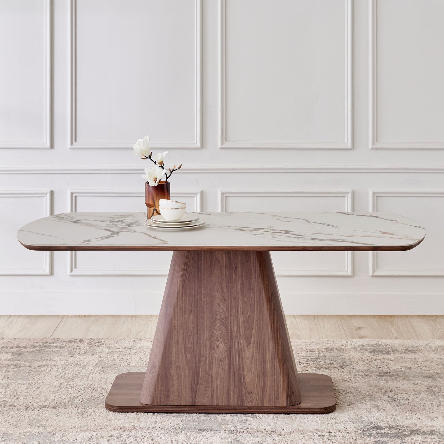 Functionality: The 180cm length is perfect for everyday use and entertaining in medium-sized dining spaces. The single pedestal allows chairs to be placed freely around the entire perimeter.