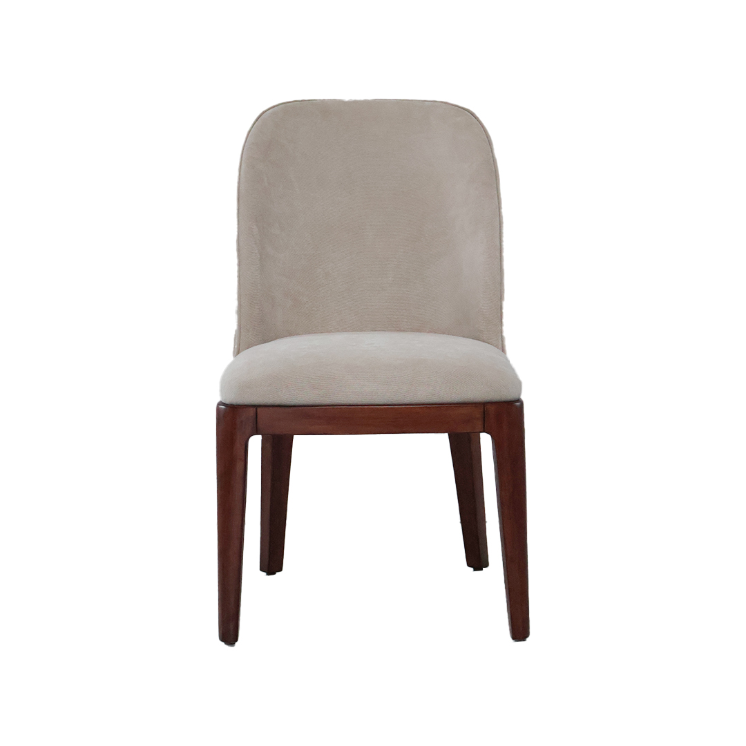 Fabric: Appears to be a soft, high-performance woven fabric like velvet, boucle, or a smooth linen/polyester blend, often chosen for its durability and stain resistance in a dining setting.