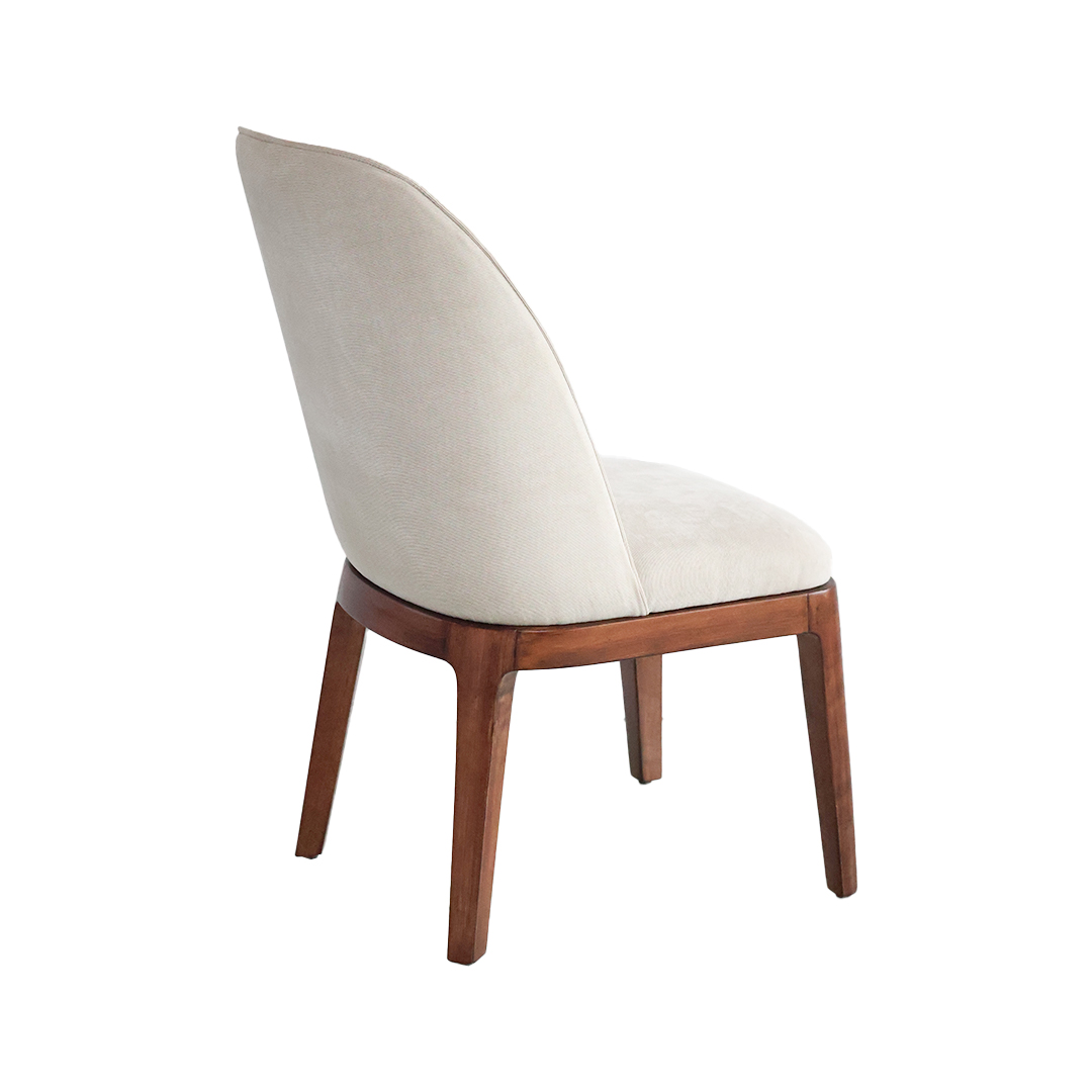 Backrest: Features a subtle, high-back curved/barrel-back design that provides ergonomic support and a soft, inviting silhouette.